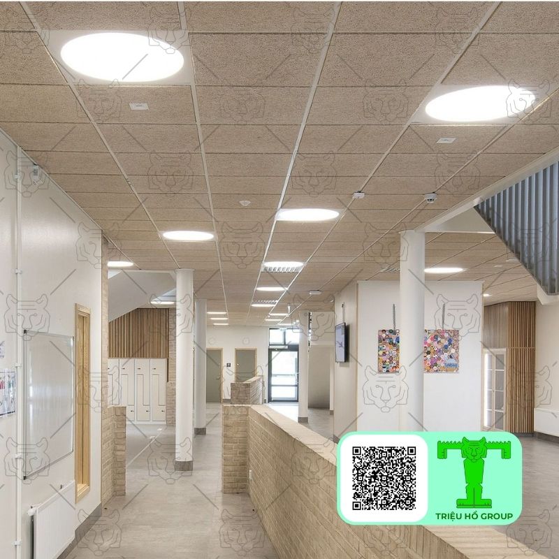 Trần nhà đóng vai trò then chốt trong việc lắp đặt các vật liệu tiêu âm, đặc biệt là trong những không gian có trần cao hoặc diện tích rộng lớn. Với bề mặt phẳng rộng, trần thường phản xạ âm thanh mạnh mẽ, gây ra hiện tượng tiếng vang khó chịu. Việc xử lý âm thanh cho trần giúp hấp thụ các sóng âm dội lại, qua đó giảm thiểu thời gian vang vọng và nâng cao rõ ràng của âm thanh trong không gian đó.